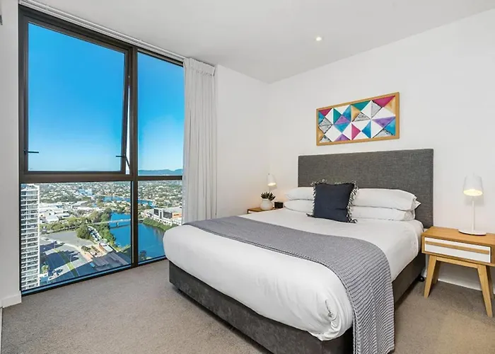 ベッドルーム2室のModern 2Br Broadbeach Ocean Hinterland Views ゴールドコースト 別荘は、フィットネスセンターを利用できるアクティブな顧客を魅了し、オアシス ショッピングセンターから徒歩で5分の場所にあります。 顧客はプライベートなプールでリラックスでき、宿泊施設から450メートル離れたザ・スター・ゴールドコーストの周辺を楽しめます。